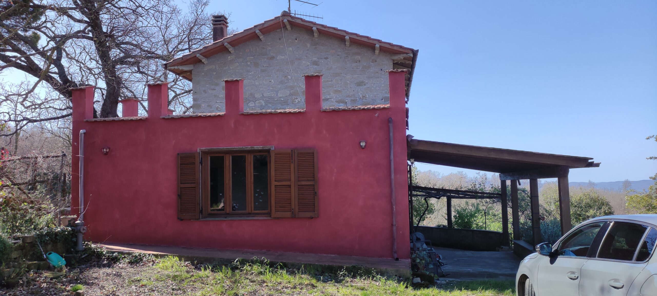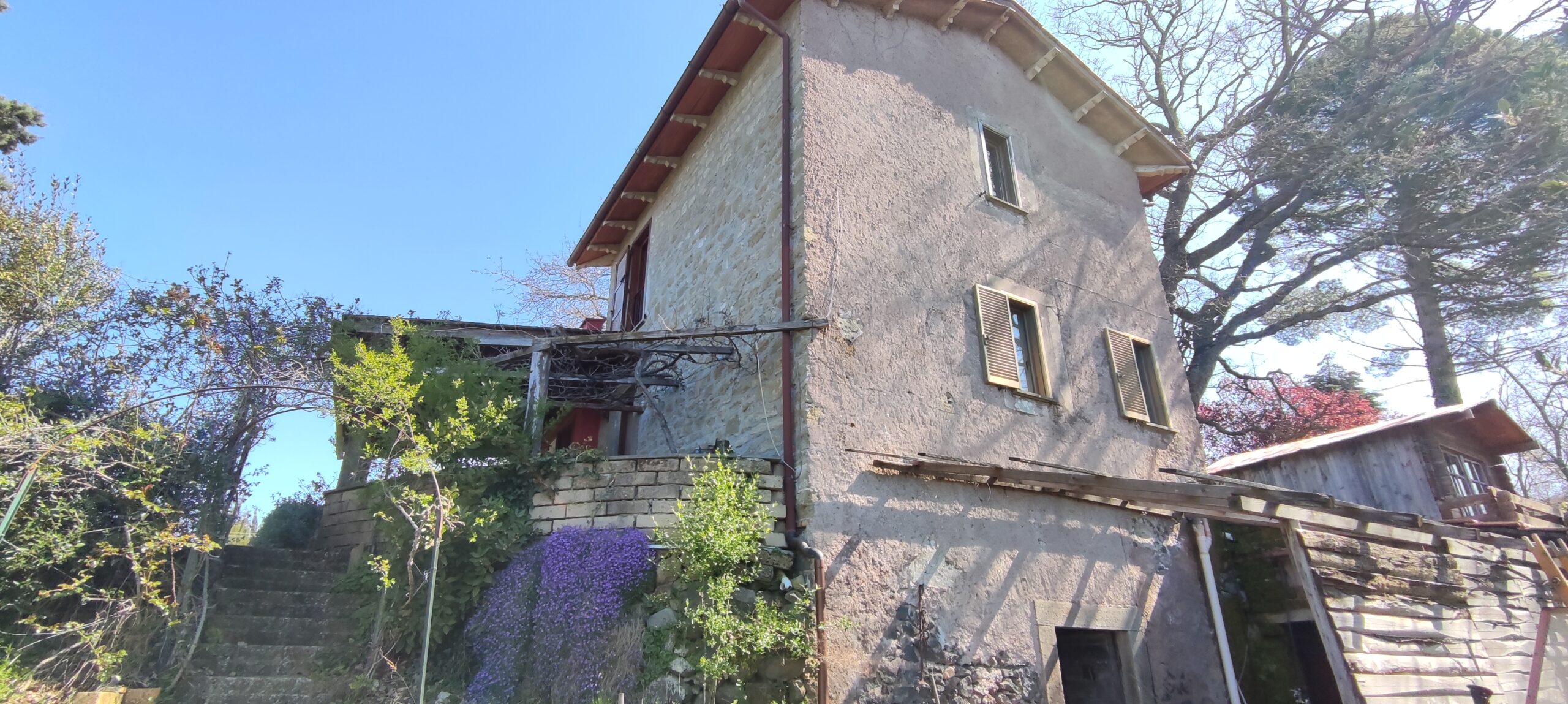 Completano la proprietà circa 70 mq di magazzini e depositi attrezzi, utilissimi per chi desidera coltivare, fare piccoli lavori o semplicemente avere spazio di servizio, e un terreno di circa 4.000 mq con alcune piante da frutto. Il giardino immediatamente intorno alla casa è più pianeggiante e fruibile, mentre il resto del terreno scende in pendenza, ideale per chi sogna un angolo di natura autentica, senza rinunciare alla comodità dell’accesso diretto dalla strada.